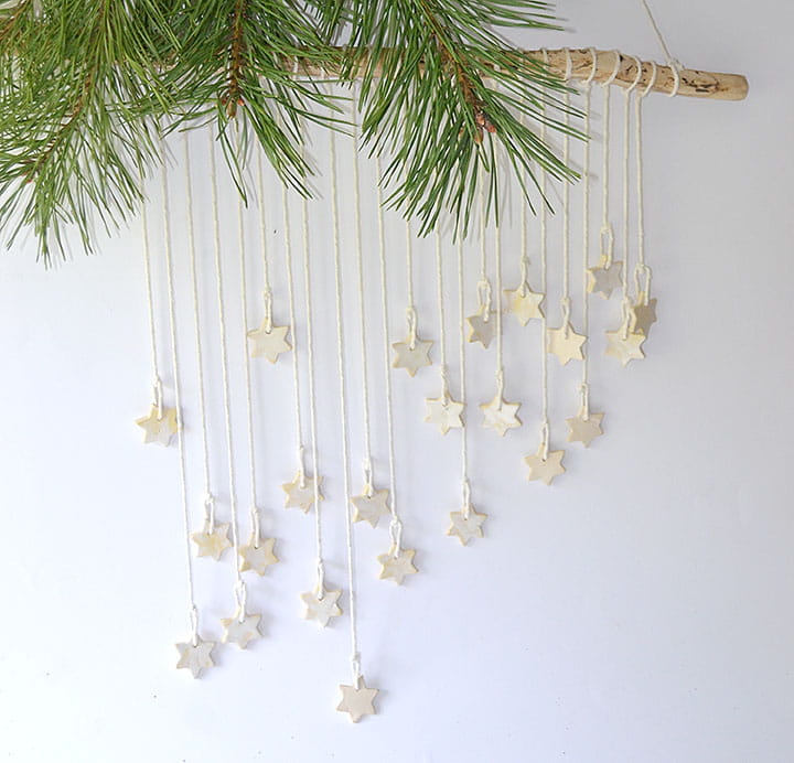 Urocza makrama wykonana z uroczych małych, jasnych gwiazdek zawieszonych na kiju.